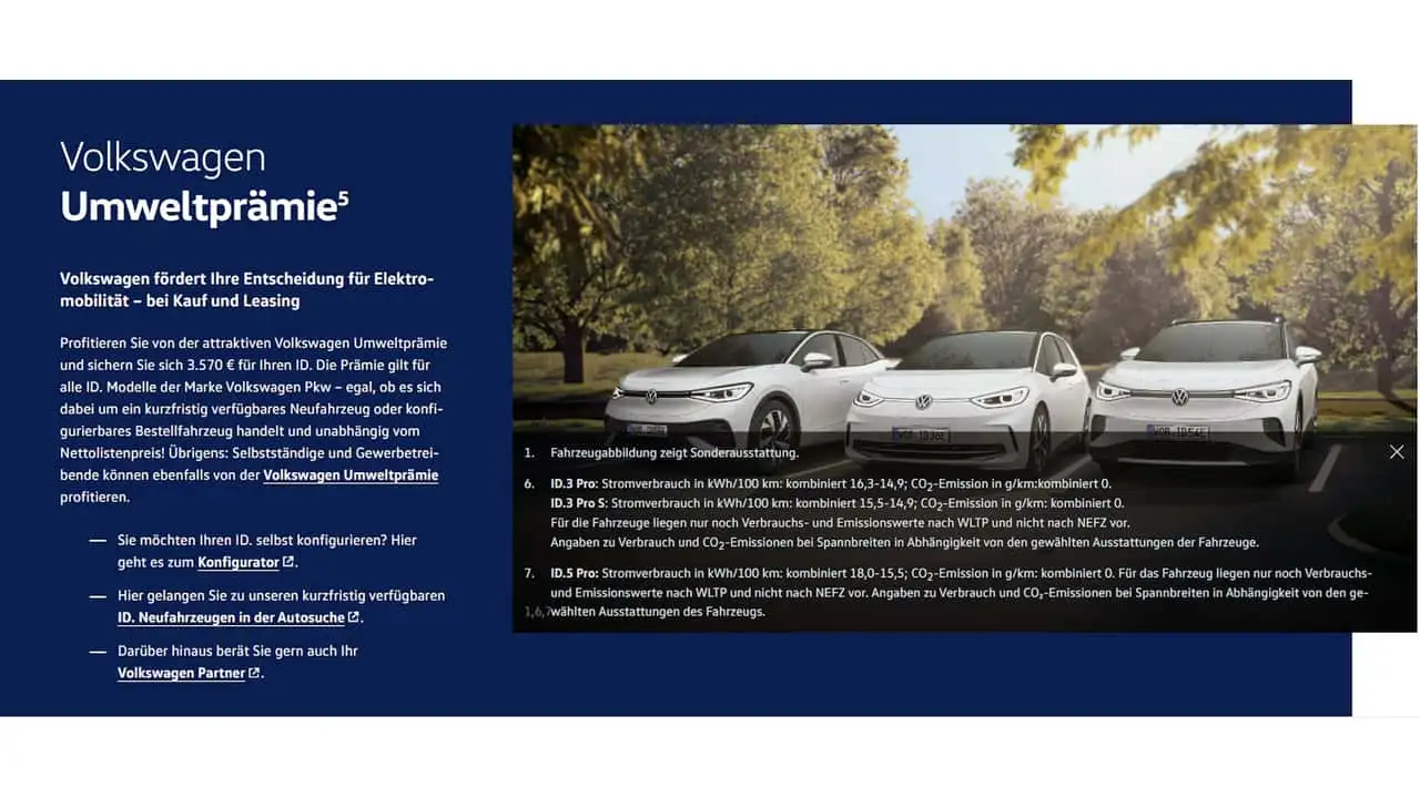 VW-Umweltprämie im April 2024 (Screenshot von der Website)
