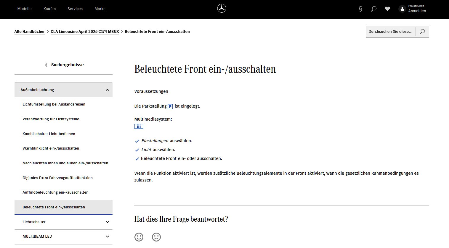 Auch im CLA-Forum von Motor-Talk haben wir ein Posting zu dem Thema gefunden; es stammt sogar schon vom September 2025. Damals fragte ein Kaufinteressent, ob man die 142 Leuchtsterne abschalten kann. Ein anderer User antwortete mit einem Link auf das Bedienhandbuch. Die Informationen daraus waren der fragenden Person allerdings nicht genau genug. Dort sei nicht erwähnt, ob mit der Deaktivierung der Frontbeleuchtung die 142 Sterne gemeint sind oder nicht, und ob eine Deaktivierung dauerhaft sei.